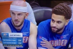 比赛中转播方晒出一组数据:本赛季阿杰伊·米切尔出战14场比赛,已拿到234分。而上赛季阿杰伊一共只打了36场比赛,总共得到234分!