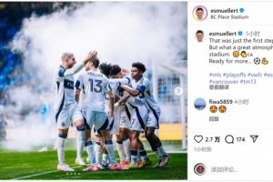 体育资讯10月28日讯 美职联季后赛第一轮首场比赛,穆勒点射破门,温哥华白浪主场3-0击败达拉斯FC,占据晋级先机。穆勒社媒晒出照片庆祝季后赛首胜,他写道:“这只是第一步,但球场内的氛围太棒了,准备迎来更多…⚽️”