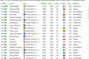 体育资讯11月12日讯 CIES足球天文台发布了最新报告,公布了全球100名球员应获得的最高年薪。这一统计模型考虑了过去一年中的比赛时间、比赛水平以及首发比例等因素,还包括球员的主要位置。在这份报告中,姆巴佩以应得2280万欧元(仅固定部分)年薪位居榜首。